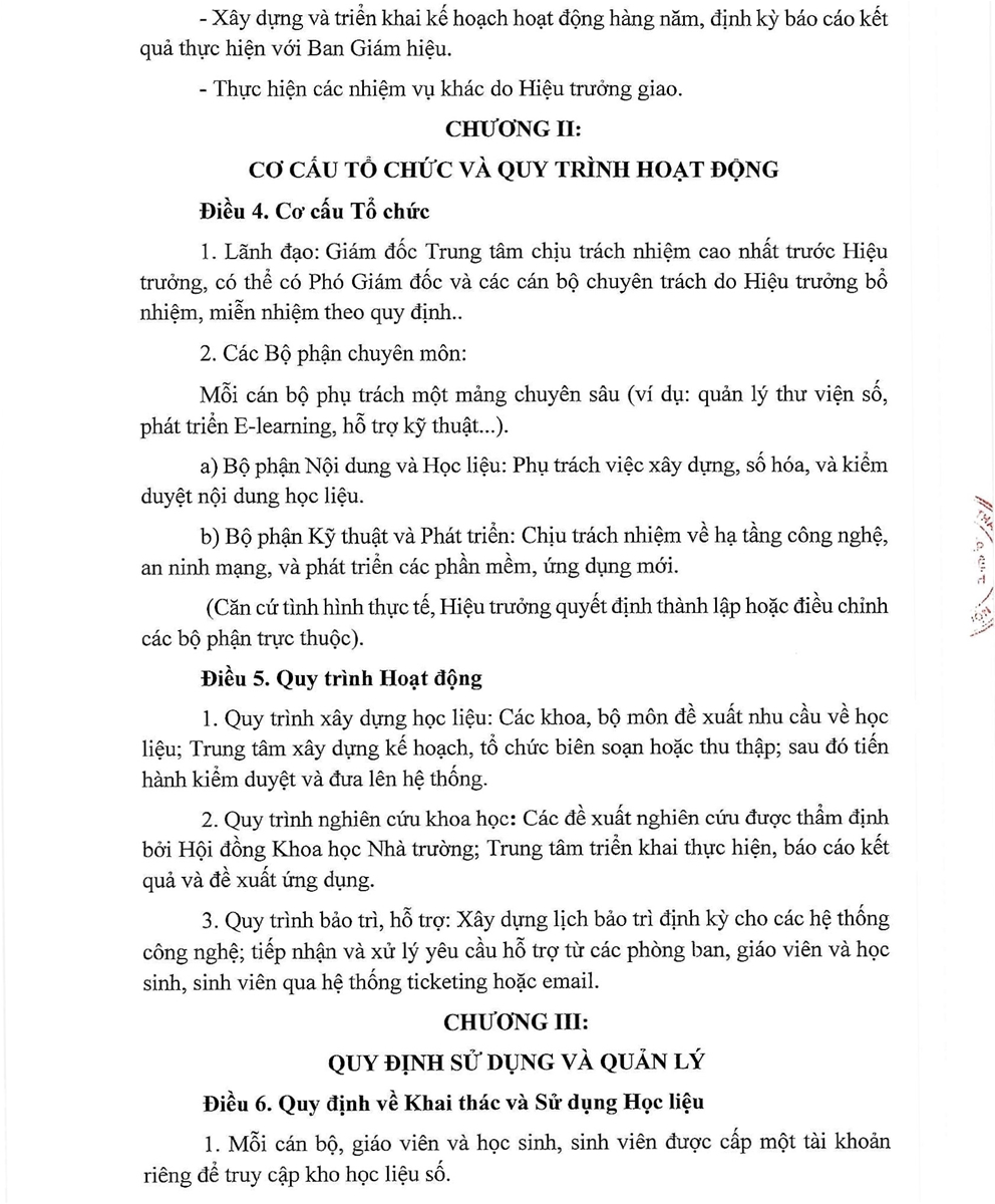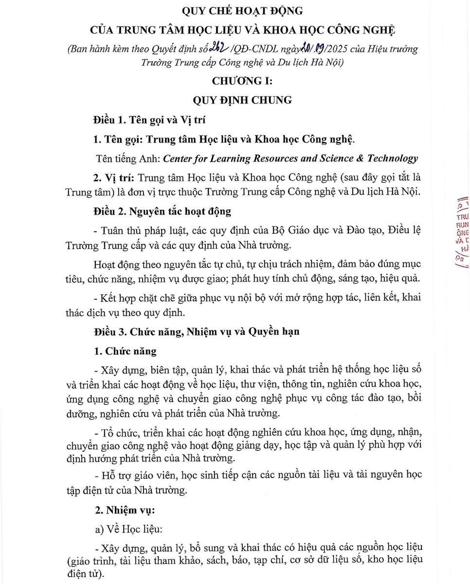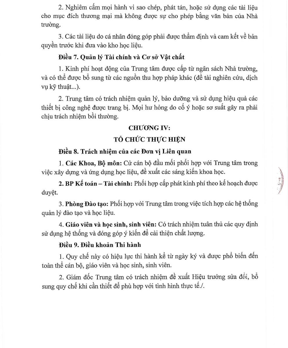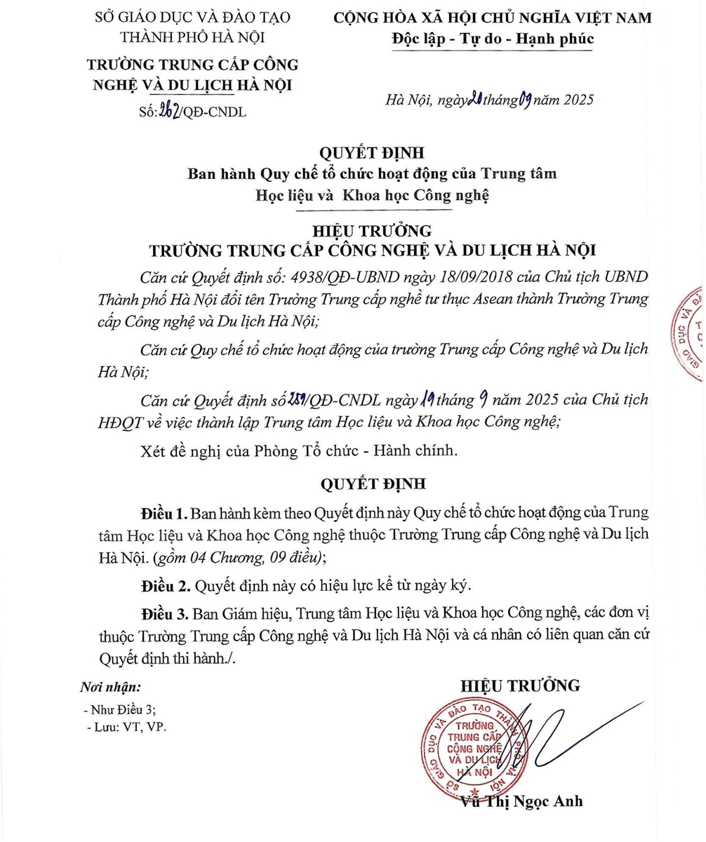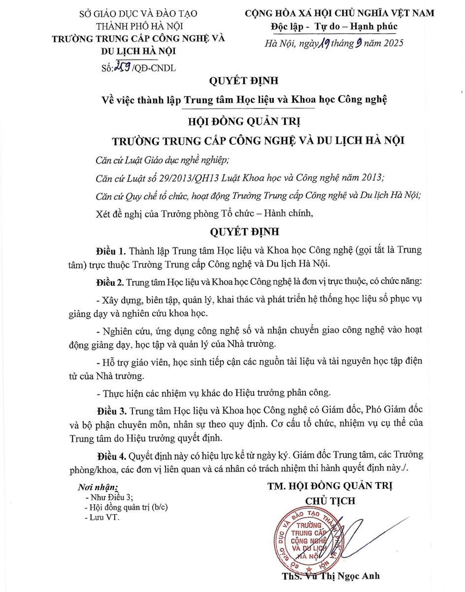 Quyết định về việc thành lập trung tâm học liệu và khoa học công nghệ